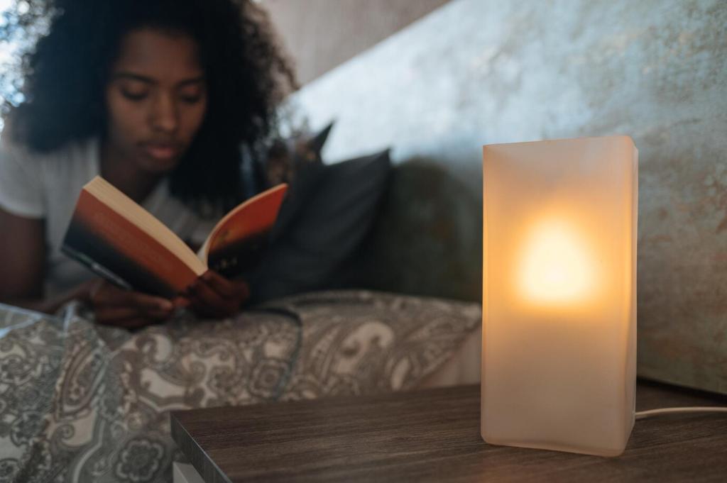 Zeitpläne, die morgens sanft hochdimmen und abends goldig herunterregeln, schenken Ruhe. Bewegungsmelder in Flur oder Bad vermeiden grelle Überraschungen. Folgen Sie uns für Szenen-Vorlagen, die Sie direkt übernehmen können.